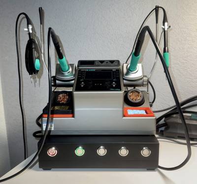 Der Github Nutzer Tropaion hat diese Umschaltbox dann modifiziert und mit KiCad eine eigene Platine designed. Er steuert die Umschaltung der Lötkolben mit dem Microcontroller ESP32. Bei seiner Version können 4 Lötkolben angeschlossen werden.